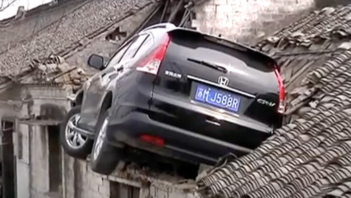 Di media sosial viral video mobil Honda CR-V tersangkut di atap rumah warga. Usut punya usut, peristiwa itu bukan terjadi di Indonesia, melainkan di Kota Taizhou, China. Peristiwa itu terjadi pada 2017.
